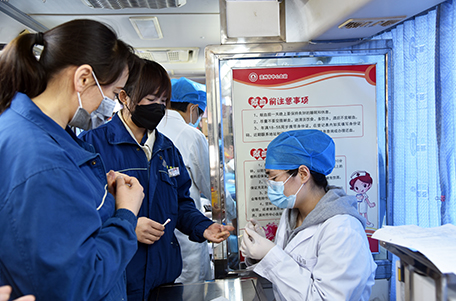 獻血隊伍中,既有工作多年的老同志,也有剛剛參加工作的新員工。獻血車就位后,員工在濱州市中心血站工作人員的指導(dǎo)下,認(rèn)真填寫獻血登記表、測量血壓、抽血化驗,經(jīng)血液檢驗合格后開始獻血。“我參加無償獻血的初衷,就是想盡自己的一點力量。”在場參與獻血的一名員工說到。簡單的一句話,展現(xiàn)的卻是充滿溫暖情感的無私之愛。