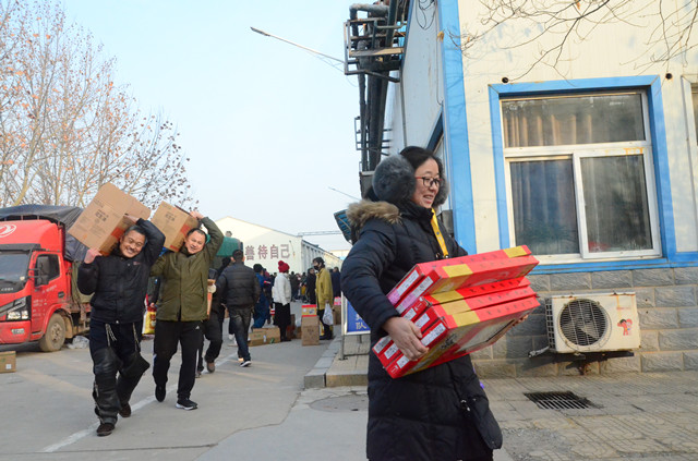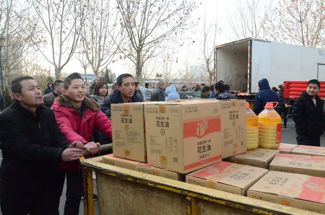 1月21日,公司主廠區(qū)廣場上再現(xiàn)熱烈氣氛,員工們以部門為單位,在這里領(lǐng)取公司為在崗員工和退休職工準(zhǔn)備的豬肉、花生油、大米等“年貨”,以體現(xiàn)對廣大員工建設(shè)企業(yè)、奉獻事業(yè)的慰問之情。