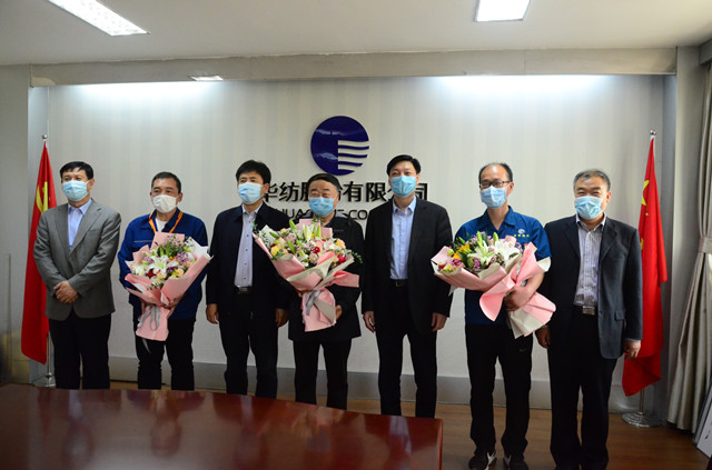 近日,五一勞動(dòng)節(jié)來臨之際,濱州市市委常委、秘書長(zhǎng)張延廷,市政協(xié)副主席、市總工會(huì)主席商玉昌,市總工會(huì)黨組書記、分管日常工作的副主席劉祖慶,市總工會(huì)黨組成員、副主席、經(jīng)審委主任王恩東一行,來到華紡股份有限公司,為濱州市五一勞動(dòng)獎(jiǎng)?wù)芦@得者、服裝車間主任晁金光頒發(fā)勞動(dòng)獎(jiǎng)?wù)?,向全國紡織行業(yè)勞動(dòng)模范、山東省勞動(dòng)模范、公司黨委書記、董事長(zhǎng)王力民,山東省勞動(dòng)模范、電氣高級(jí)工程師趙奇生和晁金光三位企業(yè)勞模代表贈(zèng)送鮮花、表達(dá)慰問,并與他們進(jìn)行了深入座談。