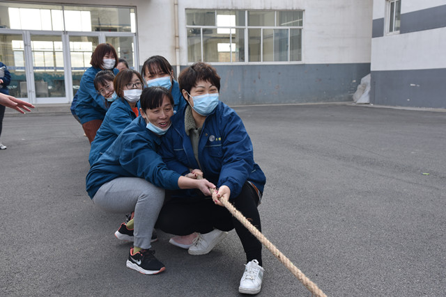 導(dǎo)讀:3月4日,在公司工業(yè)園區(qū)職工食堂廣場上,氣氛異常熱烈;隨著女工拔河比賽開始的哨聲響起,比賽場上的隊(duì)員們鉚足了勁兒往后拉,場上助威加油的啦啦隊(duì)加油聲不停。