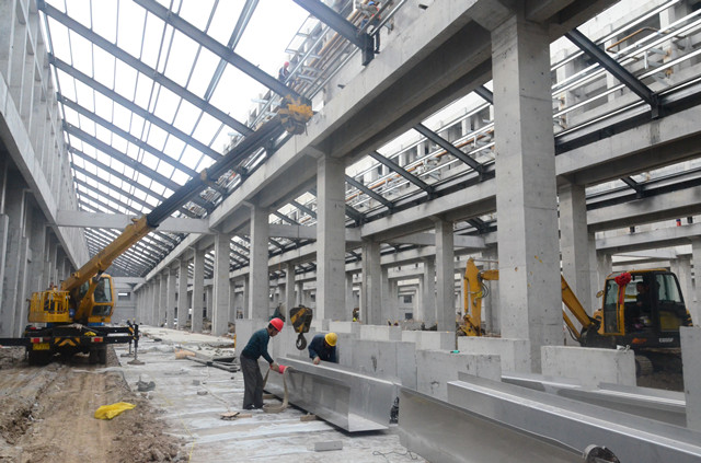 我們在王平帶領(lǐng)下,在新廠房外圍參觀了一遍。他邊走邊說,面料車間整體完成進(jìn)度85%,車間主體工程已經(jīng)建設(shè)完成,設(shè)備基礎(chǔ)在緊鑼密鼓的建設(shè)中,預(yù)計6月底整體達(dá)到投產(chǎn)狀態(tài),8月底完成全部搬遷;家紡車間整體完成度80%,車間主體工程已經(jīng)建設(shè)完成,鋼結(jié)構(gòu)工程在加緊安裝中,預(yù)計6月底整體達(dá)到投產(chǎn)狀態(tài),8月底完成全部搬遷;服裝車間整體已經(jīng)全部完成,達(dá)到了整體搬遷條件;污水處理整體完成度95%,車間主體工程已經(jīng)建設(shè)完成,脫水機(jī)房工程尚在緊張建設(shè)中,預(yù)計4月底可投產(chǎn)運(yùn)行;食堂主體完成度95%,一二層主體工程已經(jīng)建設(shè)完成,預(yù)計在3月底能達(dá)到投產(chǎn)狀態(tài),三層尚在緊張裝修中,預(yù)計4月底能達(dá)到投產(chǎn)狀態(tài);助劑加工車間、紙管廠完成度65%,主體工程已經(jīng)基本建設(shè)完成,預(yù)計6月份達(dá)到投產(chǎn)狀態(tài)。