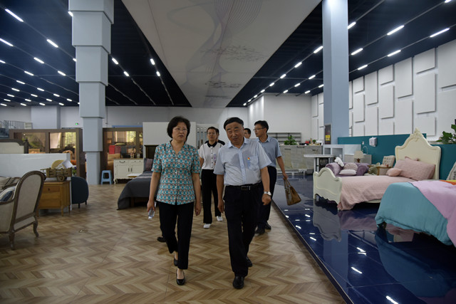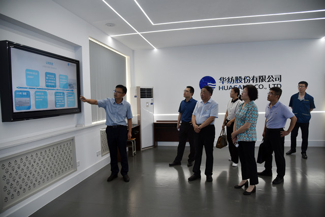 曹學(xué)軍一行先后參觀了花布車間、綜合辦公區(qū)、家紡展廳、研發(fā)創(chuàng)意中心、工程技術(shù)研究院、智云中心等部門(mén)和區(qū)域,并聽(tīng)取了公司推進(jìn)智能綠色工廠建設(shè)情況的匯報(bào)。