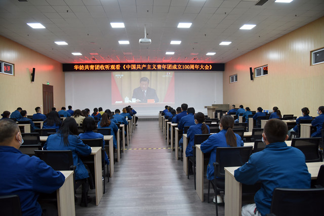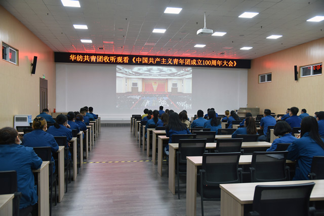 華紡組織團(tuán)員青年觀看共青團(tuán)成立100周年大會