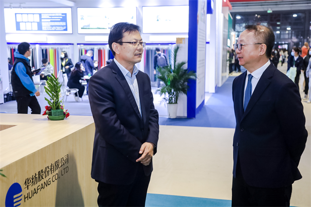 期間,中國紡織工業(yè)聯(lián)合會會長孫瑞哲,國家紡織產(chǎn)品開發(fā)中心主任李斌紅,國家紡織產(chǎn)品開發(fā)基地秘書處秘書長、中國紡織信息中心產(chǎn)品開發(fā)部主任陳小麗等到公司展位觀展。在與公司黨委書記、董事長盛守祥及服裝面料分公司總經(jīng)理王超交流中,孫瑞哲提到,華紡作為中國紡織印染行業(yè)的龍頭骨干企業(yè),要加強與參展企業(yè)交流溝通,既要展現(xiàn)公司魅力,又要做好信息交換、交流學(xué)習(xí)等相關(guān)工作,抓住機會,拓展品牌影響力,為公司開拓市場、擴大知名度,實現(xiàn)從制造加工向品牌創(chuàng)意的轉(zhuǎn)型升級夯實基礎(chǔ)。