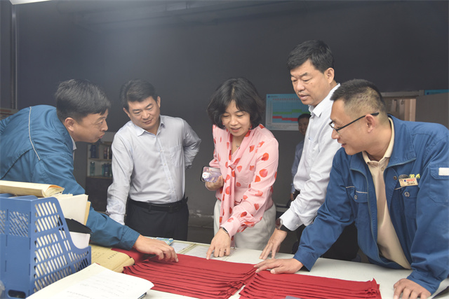 考核組一行先后到公司智云中心、檢測(cè)中心、綜合辦公區(qū)、服裝面料分公司、家紡分公司、花布分公司、研究院、王魯剛創(chuàng)新工作室進(jìn)行實(shí)地參觀考察。座談會(huì)上,與會(huì)人員觀看了企業(yè)宣傳片,詳細(xì)了解公司產(chǎn)品優(yōu)勢(shì)、產(chǎn)品研發(fā)、經(jīng)營(yíng)銷售等情況。孫玉濤就公司發(fā)展歷史、生產(chǎn)制造、科技創(chuàng)新、人才培養(yǎng)、未來(lái)規(guī)劃等方面作情況介紹??疾旖M聽(tīng)取了公司開(kāi)展全員創(chuàng)新工作專題匯報(bào),匯報(bào)主要從公司技術(shù)創(chuàng)新、理念創(chuàng)新、協(xié)調(diào)體系創(chuàng)新等層面展開(kāi),同時(shí)查看公司了創(chuàng)新工作檔案,并給予了指導(dǎo)性的建議。張艷麗指出,全員創(chuàng)新企業(yè)是群眾性的創(chuàng)新活動(dòng),華紡股份在引導(dǎo)鼓勵(lì)職工立足本職崗位、激發(fā)職工創(chuàng)新熱情和創(chuàng)造活力、提高職工自主創(chuàng)新能力、培育激勵(lì)工匠人才、推動(dòng)企業(yè)科技進(jìn)步和新舊動(dòng)能轉(zhuǎn)換等方面發(fā)揮了重要作用,希望華紡股份繼續(xù)提高產(chǎn)業(yè)承載能力和市場(chǎng)競(jìng)爭(zhēng)力,動(dòng)員激勵(lì)廣大企業(yè)職工全面參與創(chuàng)新,全面提升全員創(chuàng)新工作,推動(dòng)企業(yè)經(jīng)濟(jì)實(shí)現(xiàn)高質(zhì)量發(fā)展。
