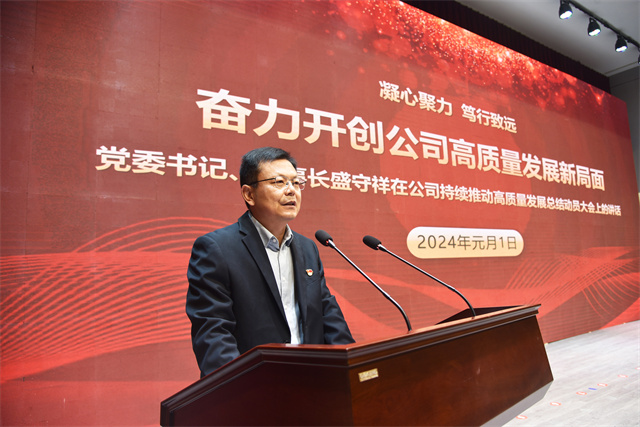 會議最后,盛守祥作了題為《凝心聚力 篤行致遠 奮力開創(chuàng)公司高質(zhì)量發(fā)展新局面》的工作報告。報告全面總結(jié)梳理了公司過去一年的工作,深刻剖析了實際工作中的問題,為新階段工作提出了指導(dǎo)性意見。2024年,公司主要工作概括為四個方面:一是堅持黨建引領(lǐng),夯實政治保障;二是堅持綠色發(fā)展,抓好環(huán)保安全;三是以架構(gòu)之變、價值作風(fēng)之變、績效之變、造血止血之變、團隊之變開啟變革之年,全面突破在望;四是在“產(chǎn)業(yè)鏈、資金鏈、人才鏈、創(chuàng)新鏈、供應(yīng)鏈”上持續(xù)發(fā)力,共建百億家園。
