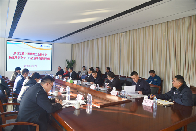 1月27日,中國紡織工業(yè)聯(lián)合會副會長楊兆華一行到華紡股份調研指導工作。市工信局黨組書記、局長姚振祥,濱城區(qū)副區(qū)長袁見,公司黨委書記、董事長盛守祥陪同調研。