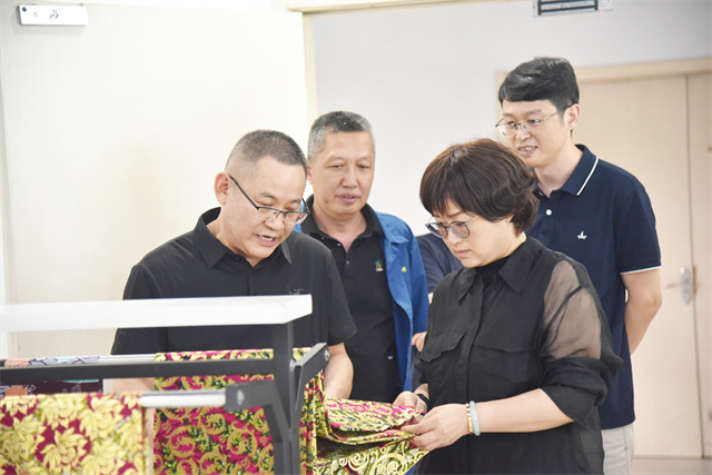 5月28日,由中國紡織行業(yè)創(chuàng)意與協(xié)同設(shè)計(jì)重點(diǎn)實(shí)驗(yàn)室主任李斌紅、中國紡聯(lián)生產(chǎn)力促進(jìn)部副主任、中國紡織信息中心產(chǎn)品開發(fā)部主任陳小麗帶隊(duì)的“紡織行業(yè)產(chǎn)品開發(fā)創(chuàng)新秘書處調(diào)研專家組”到公司進(jìn)行考察調(diào)研。公司黨委書記、董事長盛守祥,副總經(jīng)理王超,技術(shù)總監(jiān)、工程技術(shù)研究院院長孫紅玉陪同調(diào)研。