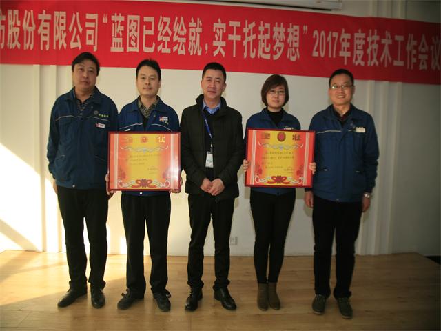 2016年,公司以技術(shù)創(chuàng)新、技術(shù)進(jìn)步為帶動(dòng),持續(xù)推進(jìn)精益化生產(chǎn)和標(biāo)準(zhǔn)化操作與管理。技術(shù)委員會(huì)以技術(shù)人員的綜合素質(zhì)提升為重點(diǎn),進(jìn)一步強(qiáng)化了技術(shù)人員的選拔、培養(yǎng)與激勵(lì),優(yōu)化了技術(shù)隊(duì)伍的知識(shí)結(jié)構(gòu)和專業(yè)技能,公司整體技術(shù)創(chuàng)新能力與水平得到顯著提高。在公司2016年技術(shù)人員打單色樣、大小樣差距實(shí)驗(yàn)、拼色樣、打樣技能等一系列競賽評(píng)比工作中,涌現(xiàn)出一批表現(xiàn)突出的技術(shù)人員。為此,公司技術(shù)委員會(huì)根據(jù)相關(guān)評(píng)比原則及條件,評(píng)比出單色樣、打樣技能方面團(tuán)體獎(jiǎng)2個(gè),獲獎(jiǎng)技術(shù)人員29名??偨?jīng)理閆英山為優(yōu)秀團(tuán)隊(duì)頒發(fā)獎(jiǎng)狀,總工程師羅維新為獲獎(jiǎng)的專業(yè)技術(shù)人員頒發(fā)榮譽(yù)證書。