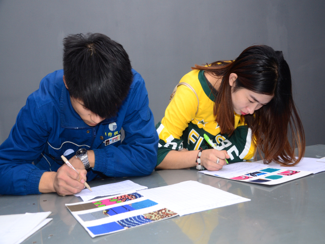 導(dǎo)讀:日前,公司質(zhì)量部組織印染車間技術(shù)人員進(jìn)行了色差、色棋測(cè)試。參加此次測(cè)試共計(jì)153人,分兩天完成,內(nèi)容分為統(tǒng)一目光、色棋排列兩方面。
