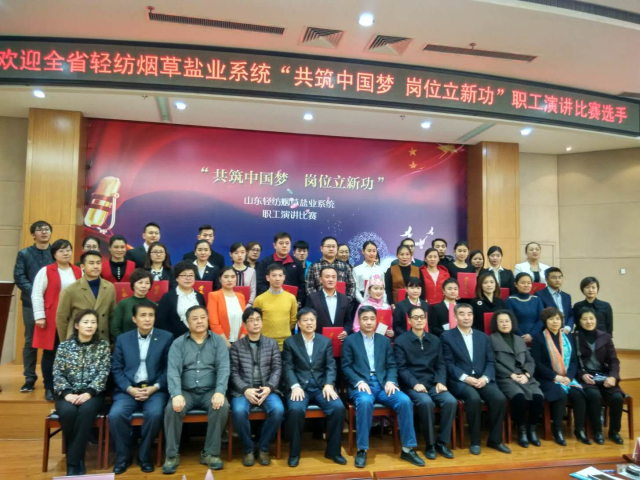 12月20日,山東省輕紡工會(huì)組織的主題為“共筑中國夢  崗位立新功”演講比賽在濟(jì)南召開。經(jīng)過前期評(píng)選推薦,共有來自全省輕紡煙草鹽業(yè)系統(tǒng)的28位選手進(jìn)入最后的決賽,公司紡紗車間劉海霞,研究院劉曉良代表公司參賽。