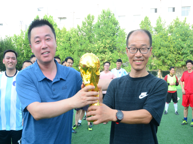 本次比賽共有7支代表隊(duì)近百余名運(yùn)動(dòng)員參與,同時(shí)吸引了近千余人次員工啦啦隊(duì)到現(xiàn)場(chǎng)觀看比賽。經(jīng)過7輪21場(chǎng)次較量,營(yíng)銷代表隊(duì)以6戰(zhàn)5勝1平積16分的不敗戰(zhàn)績(jī),獲得2018年度華紡男子足球超級(jí)聯(lián)賽冠軍、熱力代表隊(duì)獲得亞軍、花一代表隊(duì)獲得季軍。“最佳射手”被營(yíng)銷代表隊(duì)崔成龍以6場(chǎng)比賽進(jìn)8球的戰(zhàn)績(jī)獲得,營(yíng)銷代表隊(duì)李鑫昊獲得“最佳球員”殊榮,花一代表隊(duì)邢聰斬獲“最佳門將”。