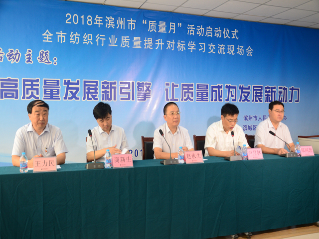 9月5日,2018年濱州市“質(zhì)量月”活動(dòng)啟動(dòng)儀式暨全市紡織行業(yè)質(zhì)量提升對(duì)標(biāo)學(xué)習(xí)交流現(xiàn)場(chǎng)會(huì)在公司科技產(chǎn)業(yè)園舉行,會(huì)議由市政府秘書(shū)長(zhǎng)尹月林主持,副市長(zhǎng)、公安局長(zhǎng)趙永生,市質(zhì)監(jiān)局黨委書(shū)記商新生,濱城區(qū)副區(qū)長(zhǎng)鄭同忠,公司黨委書(shū)記、董事長(zhǎng)王力民出席啟動(dòng)儀式。