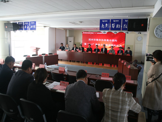 公司是全國紡織行業(yè)的優(yōu)勢骨干企業(yè),多年來規(guī)范協(xié)商、認真履行《集體合同》,在員工權益、安全生產及女職工保護等方面取得了良好成效,集體協(xié)商制度也為員工隊伍穩(wěn)定、企業(yè)整體發(fā)展提供了有力保障。京博集團、渤?;钊葹I州市不同行業(yè)的優(yōu)勢骨干企業(yè),一同參加了當天的集中簽約儀式。圖為當天集中簽約儀式現(xiàn)場情形。